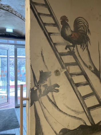 На стене гардероба сохранены автографы гастролировавших здесь артистов.
