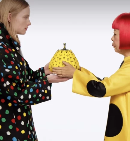 Фирменные разноцветные точки, ставшие опознавательным знаком Яеи Кусамы, появились на сумках Louis Vuitton с легкой руки Марка Джейкобса, который в 2012-м году был арт-директором бренда. Коллаборация имела огромный успех, и выпущенные тогда изделия теперь продаются на аукционах.