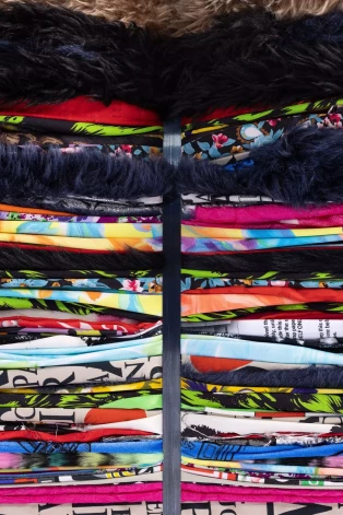 Кресло Rag сделано из ненужной одежды, сложенной ровными слоями и закрепленной на деревянном каркасе с помощью ремней и металлических скоб. Впервые Тейо Реми представил его в 1991 году, а сейчас это уже целая серия кресел. Например, для выставок каждый раз собирается новое кресло из локальных материалов.