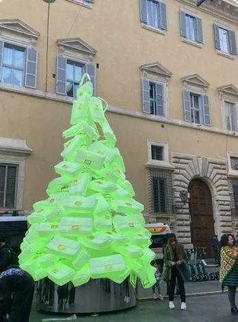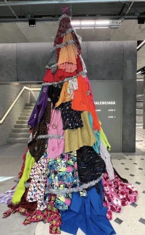 Модный дом Balenciaga, идя в ногу со временем, создал свою новогодню елку из нераспроданной одежды. Получилось очень экологично.