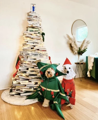 А пользователь Instagram #treatyoshelvess предлагает сложить из книг саму елку.
