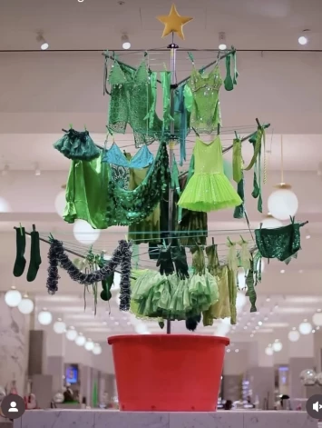 По тому же пути пошел и британский магазин Selfridges, установивший елку из разнообразных галантерейных товаров зеленого цвета - от бальных платьев с пайетками до носков и лифчиков.