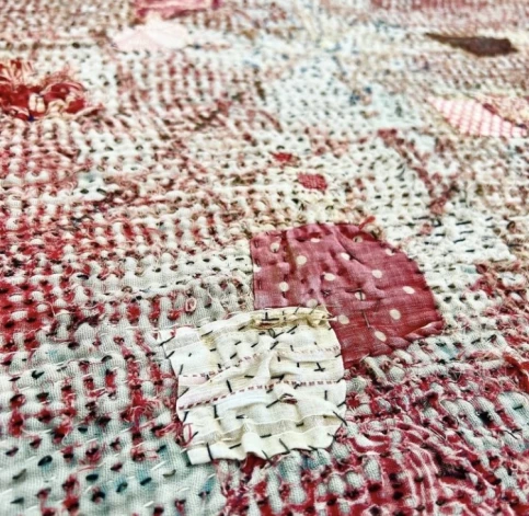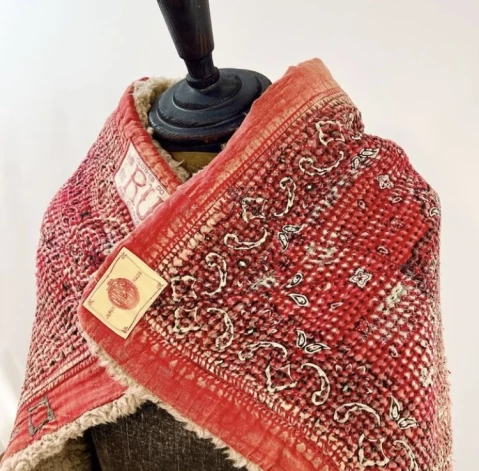 Это одеяло создано японским брендом PROLETA RE ART, который занимается апсайклингом старых вещей в старинной японской технике “боро”.