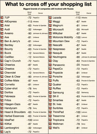 Составлен список “аморальных” брендов, которые вольно или невольно поддерживают войну в Украине