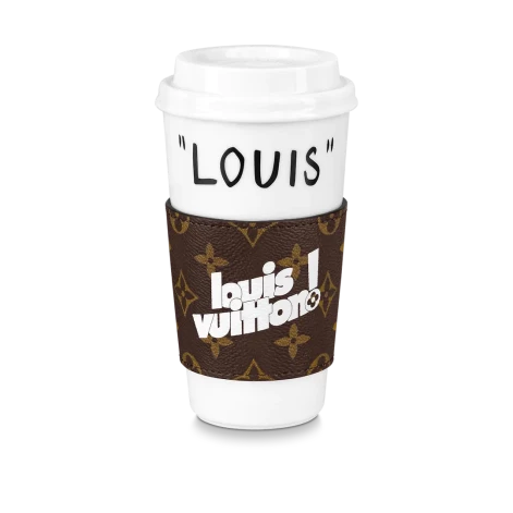 У другого французского модного дома Louis Vuitton в коллекции подарков есть стакан за 870$. Выглядящий, как обычный одноразовый стаканчик для кофе навынос, он на самом деле выполнен из фарфора, а держатель сделан из кожи с легендарным принтом Monogram.