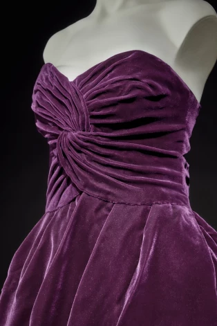 Это бархатное платье фиолетового цвета с тремя золотыми пуговицами на спине - одно из самых известных в гардеробе принцессы. Его создал модельер Виктор Эдельштейн в 1989 году.