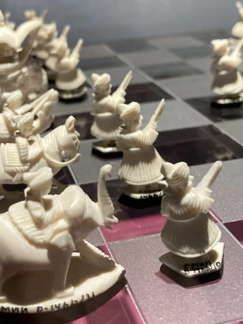 В разделе “Досуг” — кукол из театра марионеток и традиционного индийского театра теней, а также искусно вырезанные из слоновой кости шахматы — эта игра, которую многие ошибочно считают арабским изобретением, на самом деле родилась в Индии.