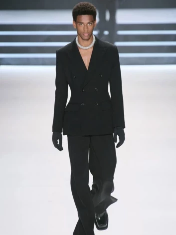 Dolce & Gabbana не стали гнаться за сиюминутными трендами из TikTok, а показали отлично скроенные классические костюмы и пальто в спокойной монохромной гамме. Изюминкой коллекции стали детали - корсеты как самостоятельный элемент одежды, жемчужные бусы и пиджаки, надетые на голое тело.