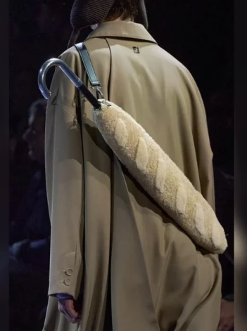 У Fendi оказался и самый остроумный аксессуар - сумка для зонтов в форме багета (намек на сумку Fendi Baguette, 25-летний юбилей которой бренд отметил в прошлом году).