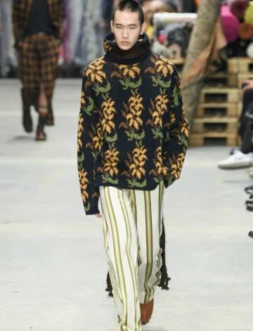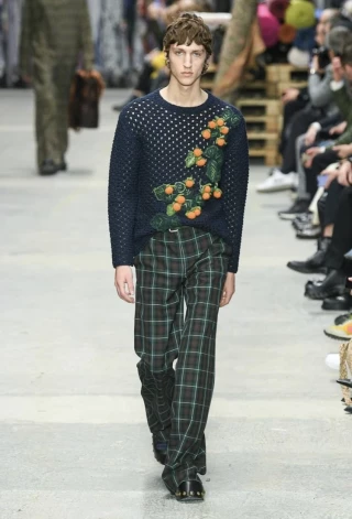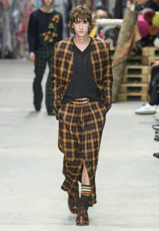 Марко де Винченцо в дебютной мужской коллекции для Etro взял за основу архивные принты марки и создал из них новые современные силуэты. В коллекции также было несколько длинных мужских юбок.