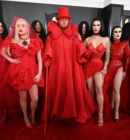 Есть артисты, которые из каждого своего появления создают мини-шоу. Сэм Смит (кстати, будущий хэдлайнер латвийского фестиваля Positivus) - из их числа. На церемонию он заявился с целой свитой, и все они были одеты в красное.