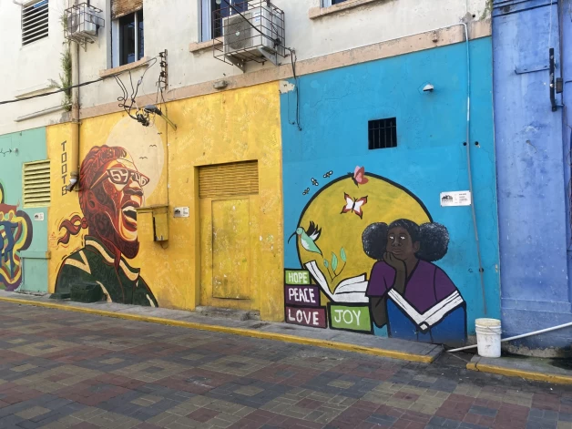 Сейчас здесь 66 муралов, и это далеко не предел. По району водят экскурсии обаятельные гиды, а художники, работающие над очередными фресками, всегда готовы попозировать обалдевшим туристам.