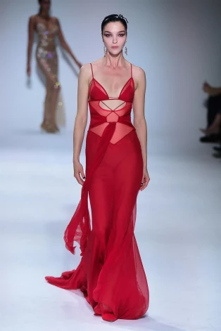 При этом коллекция была кричащее сексуальной: многие образы напоминали не то наложниц в гареме, не то сотрудниц современного борделя.