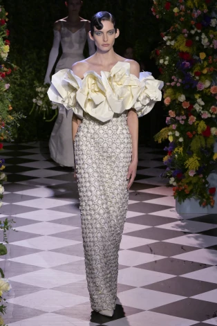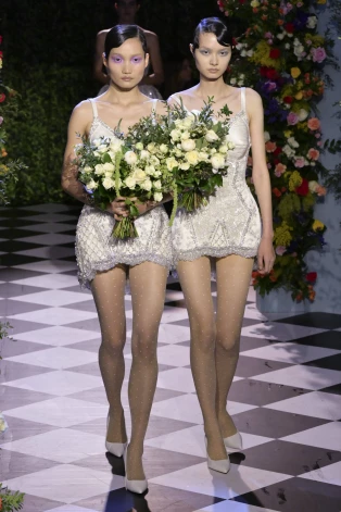 Обычно дизайнерское шоу завершает образ невесты. У Ричарда Куинна (единственного дизайнера, показ которого посетила покойная королева Елизавета II — это было в 2018-м году), таких невест было несколько десятков.