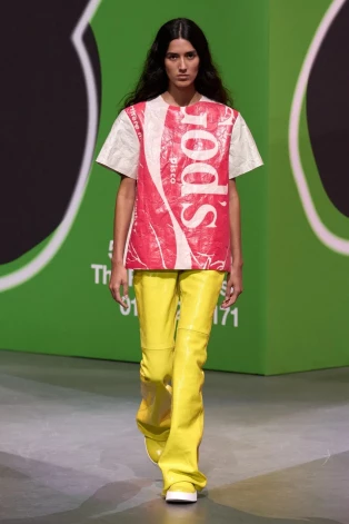 Очередную радикальную коллекцию показал JW Anderson: одежда, сделанная словно из рекламных щитов, утрированные детали и провокационные рисунки. Дизайнер не перестает иронизировать над обществом потребления.