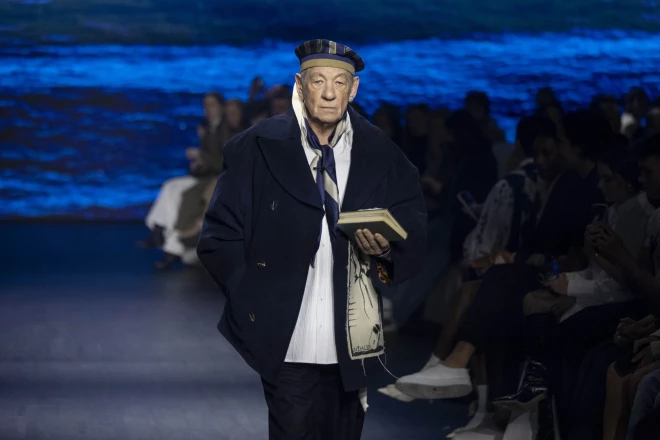 Показ марки S.S Daley открыл легендарный британский актер, известный по роли Гэндальфа из фэнтези “Властелин колец”, 83-летний Иэн Маккален (кстати, открытый гей и активный борец за права сексуальных меньшинств).