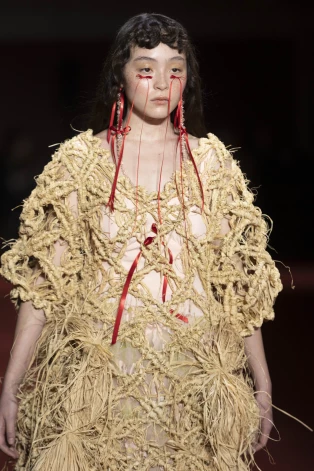 Главным декоративным элементом коллекции Simone Rocha стали тонкие красные ленточки.
