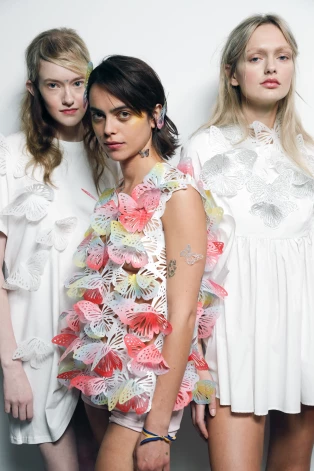Во время London Fashion Week прошел совместный показ трех украинских брендов. Иван Фролов (Frolov), который прославился нарядом для выступления Бейонсе в Дубае, показал нечто романтично-сказочное, в цветочках и бабочках.