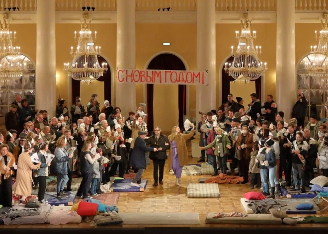 Действие оперы, рассказывающей о войне 1812-го года и нашествии Наполеона на Москву, перенесено в наши дни. Но это не прямая аналогия с событиями в Украине. “Показывать такое было бы неправильно, даже цинично. Мы стараемся подходить к этой теме очень деликатно”, — говорит Черняков в интервью газете Süddeutsche Zeitung.