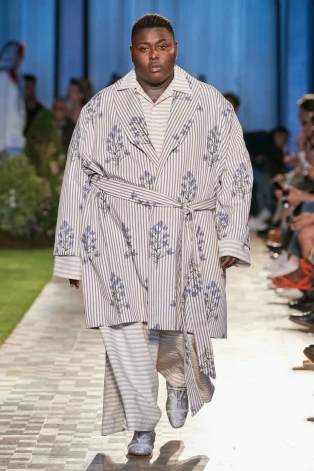 На его показе весна-лето 2023 на Лондонской неделе моды на подиум вышли целых четыре крупногабаритные модели, что для большинства брендов просто немыслимо.