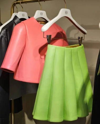 У Loewe были юбки и платья, созданные из кожи, но выглядящие так, словно их позаимствовали из гардероба игрушечной Минни Маус из Диснейленда.