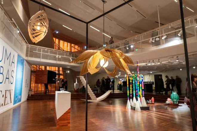 На выставке можно увидеть 20 работ, созданных латвийскими дизайнерами, которые представляют разные поколения и работают в разных отраслях.