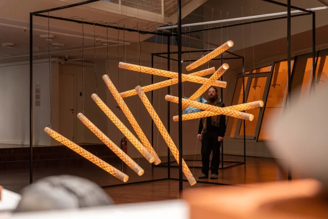 “Мы решили провести эту выставку в парадоксальной обстановке, ведь концертный зал - это помещение, постоянно наполненное звуками. Мы приходим сюда со своей тишиной и разными интерпретациями авторов на эту тему. И призываем посетителей не искать конкретных ответов на вопрос, что такое тишина в дизайне, а самим поразмышлять на эту тему”, - говорит куратор выставки Аугуста Петре.