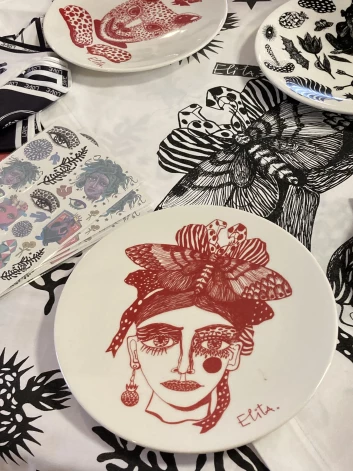Наконец, она автор массы прикладных произведений декоративного искусства - посуды, платков, авторской одежды и аксессуаров.