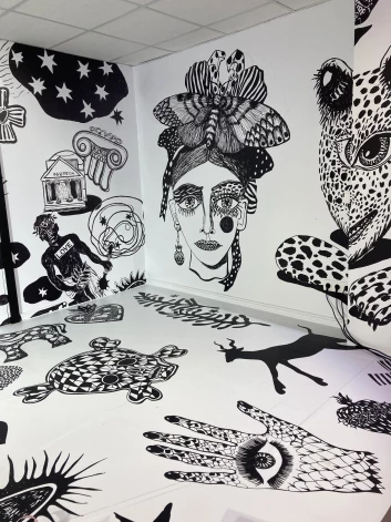 Этот мир, населенный ее любимыми персонажами - обезьянами и бабочками, лобстерами и летучими мышами, звездами и мухоморами, губами и сердцами, - возможность ощутить по-детски непосредственную радость жизни и хотя бы ненадолго отключиться от информационной повестки.