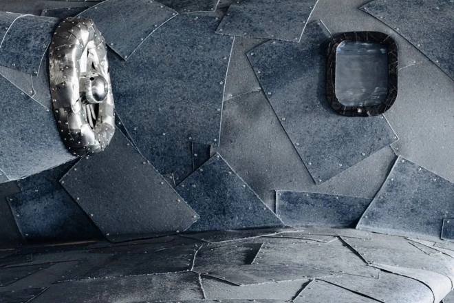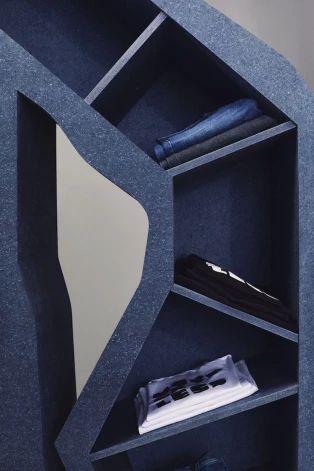 Помимо самолета, дизайнер создал для выставки три шкафа, каждый из которых имеет силуэт брюк. Шорты, клеш или прямые — на любой интерьерный вкус. В их обивке также использованы переработанные джинсы G-Star Raw.