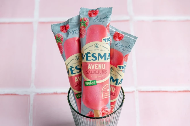 Этим летом Vēsma стремится стать крупнейшим в Латвии брендом веганского мороженого промышленного производства. Именно поэтому в ее ассортименте появилась совершенно новая категория – два фруктово-ягодных сорбета на палочке, которые изготавливаются в основном только из сырья растительного происхождения. В результате мороженое-сорбет из настоящей малины и манго предлагается всем потребителям, кому близок веганский рацион.