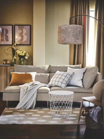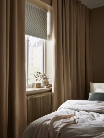 - Ограничивающие свет гардины (например, гардины HILJA за 14,99 евро) и прозрачные или ограничивающие свет жалюзи затемняют дневной свет, проникающий в комнату, когда на улице слишком ярко, и уменьшают блики. Это дает комфортное ощущение, поскольку в окне ничего нельзя будет увидеть. Внешний свет по-прежнему проникает внутрь и создает уютную атмосферу в комнате.