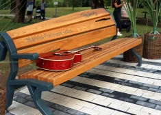 ФОТО: в Айзпуте состоялось открытие музыкальной скамейки Мартиньша Фрейманиса - он умер в 33 года