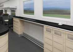 Многие пассажиры работают в пути, поэтому каждое эргономичное сиденье будет оборудовано розетками, индивидуальным освещением, столиками для ноутбука и удобными регулируемыми спинками. Чтобы уменьшить окружающий шум и создать уютную атмосферу, пол в купе поезда будет покрыт коврами. Первый класс поезда будет оформлен как закрытое помещение на 16 мест с более тихой зоной, где пассажиры смогут вызвать персонал поезда одним нажатием кнопки. В аккумуляторных поездах, которые будут курсировать на короткие расстояния, будет 128 мест, и они будут оборудованы зонами самообслуживания для кофе и закусок.