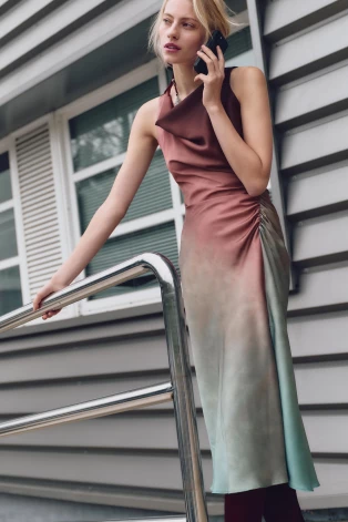 Драпированные формы и струящаяся, ниспадающая фактура ткани - один из главных трендов сезона, олицетворяющий элегантность и романтику. Драпировка часто используется для создания структурированных, но плавных силуэтов, которые придают женственному стилю особую утонченность. Драпированные платья, туники и блузки создают мягкие женственные формы, создают иллюзию подвижности и добавляют образу легкости. "Это идеальный способ придать образу динамичности и сделать его утонченным", - отмечает стилист.