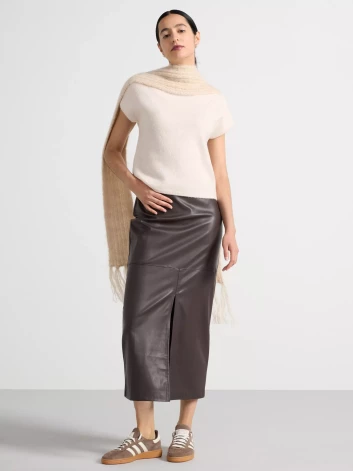 "Искусственная кожа - доминирующий материал в этом сезоне, особенно в верхней одежде", - говорит стилист. От классических кожаных курток до длинных структурированных пальто - кожа используется для создания сильных, уверенных силуэтов, одновременно современных и экологичных. Неожиданная цветовая палитра - темно-зеленые, бордовые и даже металлические оттенки - придает кожаной одежде новый и свежий вид. Кроме того, в этом сезоне кожа сочетается с различными материалами, такими как шерсть и кашемир, создавая многослойные и фактурные наряды, одновременно элегантные и практичные.