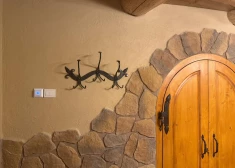 Лестницу, межкомнатные двери, круглую входную дверь, а также оригинальную кухонную и ванную мебель изготовил местный плотник – опытный мастер. Все остальное Алдис делал сам. Опыт в строительстве он получил в молодости, помогая отцу – профессиональному строителю – возводить семейный дом в Берги. Страубергс окончил Рижский технический университет, изучал машиностроение и механику. Хотя эта сфера отличается от строительства, инженерное мышление ему не чуждо. "Перед каждым этапом я смотрел в интернете, как его правильно выполнять, чтобы не напортачить", – рассказал он.