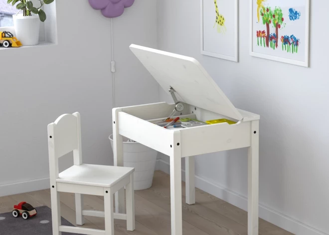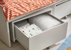 Для дополнительного удобства рассмотрите возможность использования многофункциональной мебели, например, детского письменного стола SUNDVIK или кровати SLÄKT с местом для хранения вещей. Такая мебель не только обеспечивает дополнительное пространство для выполнения различных задач, сидения или сна, но и предлагает разумные решения для хранения сезонной одежды, дополнительных игрушек или постельного белья в коробках SKUBB. Кроме того, выбрав прозрачные или открытые коробки для хранения, дети смогут легко видеть, что находится внутри, что поможет им навести порядок в своей комнате после игры.