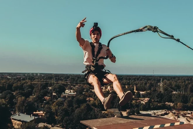 Для тех, кто ищет острых ощущений, команда Ropejumping Latvia предлагает прыжки на веревке с башни Слокской бумажной фабрики (47 метров) — это самая высокая платформа в странах Балтии.