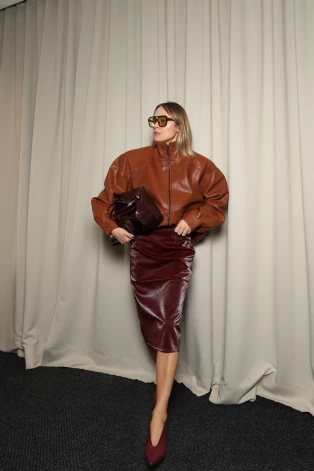 Кожаная куртка по-прежнему — один из главных акцентов осеннего гардероба. Особенно актуальны модели с выразительной линией плеч и высоким воротником, которые придают силуэту силу и характер. Палитра цветов стала смелее — наряду с классическим черным и темно-коричневым появились теплые оттенки, например кирпичный, придающий классической коже новое дыхание. Этой осенью на пике — необычные цветовые комбинации, а главный акцент сместился на обувь: стильные красные ботинки!