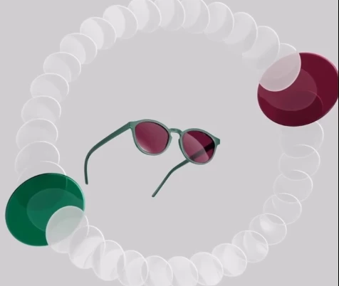 Color contrast (цветовой контраст) — контраст между оправой и линзами. Например, ярко-зелёная оправа с рубиновыми линзами создаёт современный и смелый акцент.