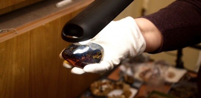 Аните Саулите всегда хотелось пополнять янтарную коллекцию музея. „Частично мы пополнили коллекцию в 80-е годы балтийским янтарем, а благодаря проекту ”Рига-2014„ у нас появилась возможность получить янтарь из других стран. Этот янтарь образовался в различные эпохи и из смолы разных деревьев, и по своим качествам он тоже очень разный”, - говорит Саулите, демонстрируя коробку с голубоватыми кусочками янтаря темных оттенков, которые переливаются голубым и зеленым.