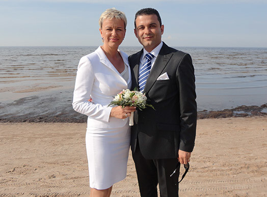 В мае экс-министр внутренних дел Линда Мурниеце (42) стала женой врача-гастроэнтеролога Хосама Абу Мери (38). Мурниеце, которая после свадьбы взяла фамилию мужа, призналась что она и ее будущий супруг хотели скромную свадьбу без лишней помпы, и им удалось воплотить свое желание в жизнь — после церемонии в ЗАГСе было фотографирование в салоне, ужин и прогулка вдоль моря. «Нас было всего четверо — мы и свидетели. Расписались возле самого дома — в кекавском ЗАГСе, просто перешли через дорогу. Церемония была короткой, но очень волнительной, потому что руководительница ЗАГСа произнесла красивую речь. Чувствовалось, что она говорила от души», — рассказывает Линда Абу Мери, которая на вопрос, почему они решили жениться в рабочий день, добавляет, что нет смысла дожидаться какой-то особенной даты.