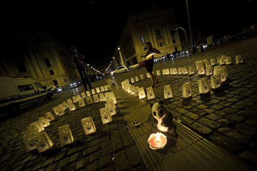 На символе Парижа Эйфелевой башне выключили прожекторы. Кроме того, по распоряжению президента Франции Николя Саркози, огни потушили в Елисейском дворце. В Испании обесточили знаменитую церковь архитектора Гауди Саграда Фамилия. В Нью-Йорке на фоне ночного неба померк небоскрёб Empire State Building.