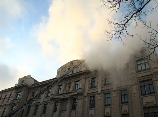 В тихом центре Риги горела крыша четырехэтажного дома