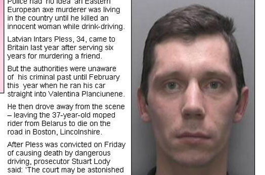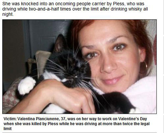 В Великобритании за совершение аварии судят нашего бывшего соотечественника, 34-летнего Интарса Плешса, который в ночь с 14 на 15 февраля будучи в пьяном виде за рулем насмерть сбил 37-летнюю Валентину Планчуниене, гражданку Белоруссии.