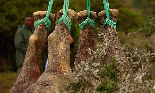Для некоторых находящихся под угрозой исчезновения носорогов,1000-мильный путь к спасению от браконьеров начинается с вертолета - пусть он и висит вниз головой, с завязанными глазами, но все-таки для него это реальный шанс выжить. Данный вариант может показаться неудобным, но эксперты говорят, что это на самом деле, это самый легкий способ транспортировки массивного млекопитающего, чем другие средства.