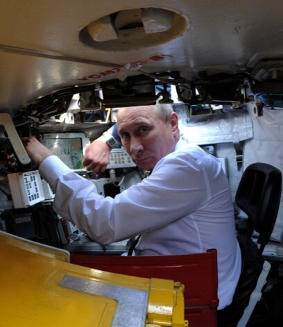 Владимир Владимирович, оценив внешний вид грозной машины, постучал кулаком по броне и забрался на танк. Путин решил лично осмотреть внутренности броневика и ловко залез внутрь боевой машины.