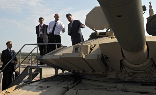 Путин настолько заинтересовался, что скинул пиджак, залез в башню Т-90С, где на месте командира попробовал систему управления машины – круговую систему обзора, лазерные дальномеры, прицелы и другие электронные «девайсы».