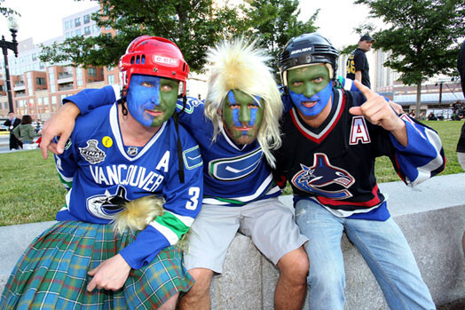 Болельщики клуба НХЛ «Ванкувер Кэнакс», который сейчас борется за первый в своей истории Кубок Стэнли, кажется, просто сошли с ума от любви к свой команде и постоянно «перформируют» как на хоккейных аренах, так и вне их.